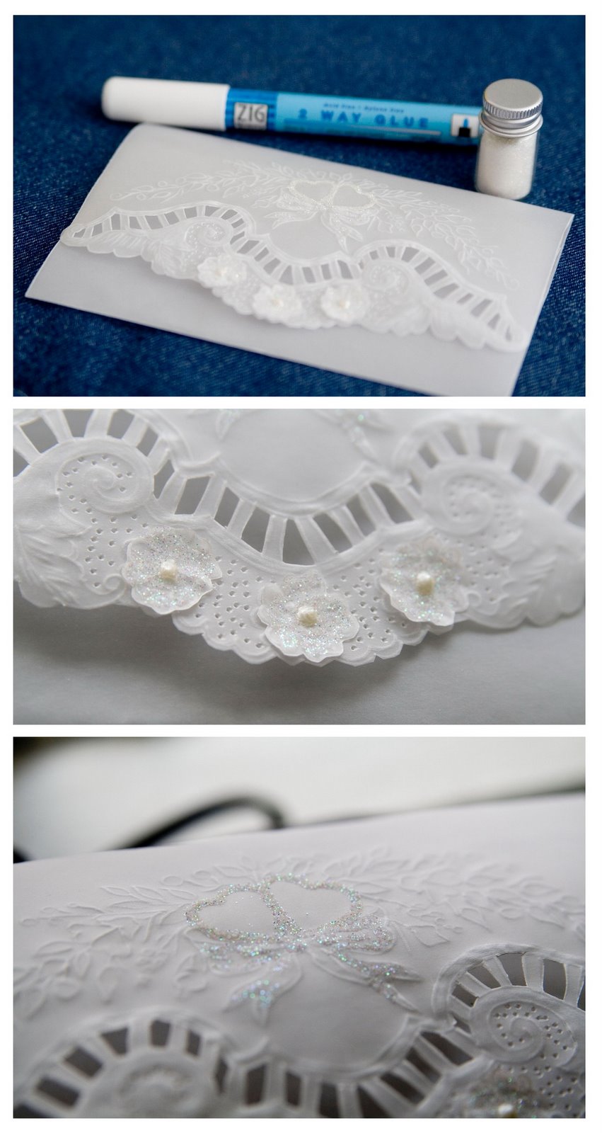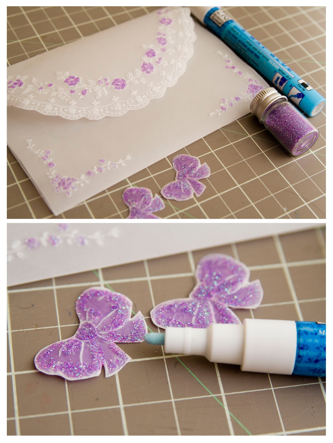 Второй конверт нигде не раскрашивала и просто украсила глиттером.