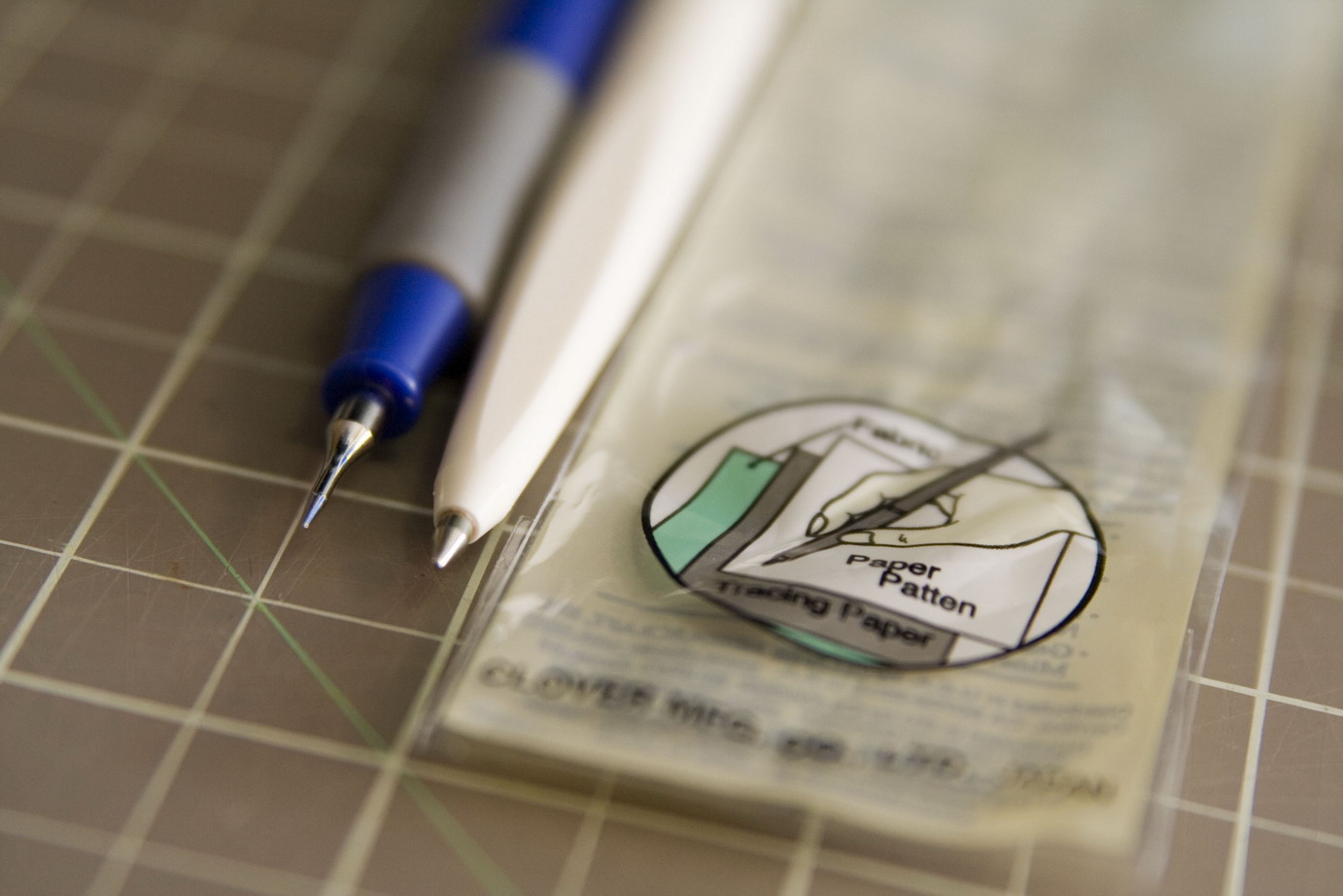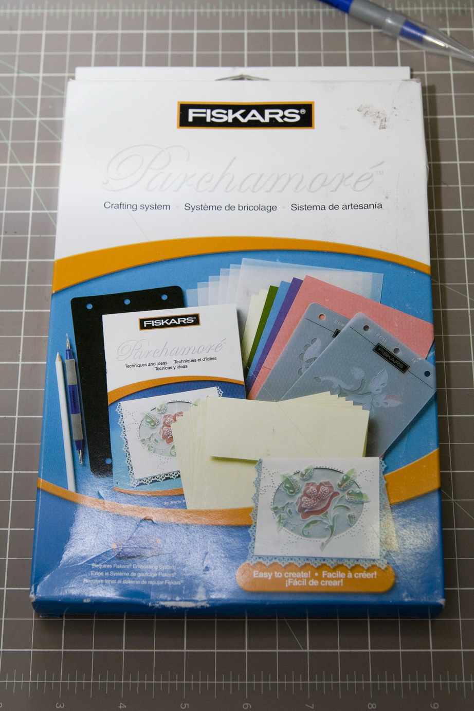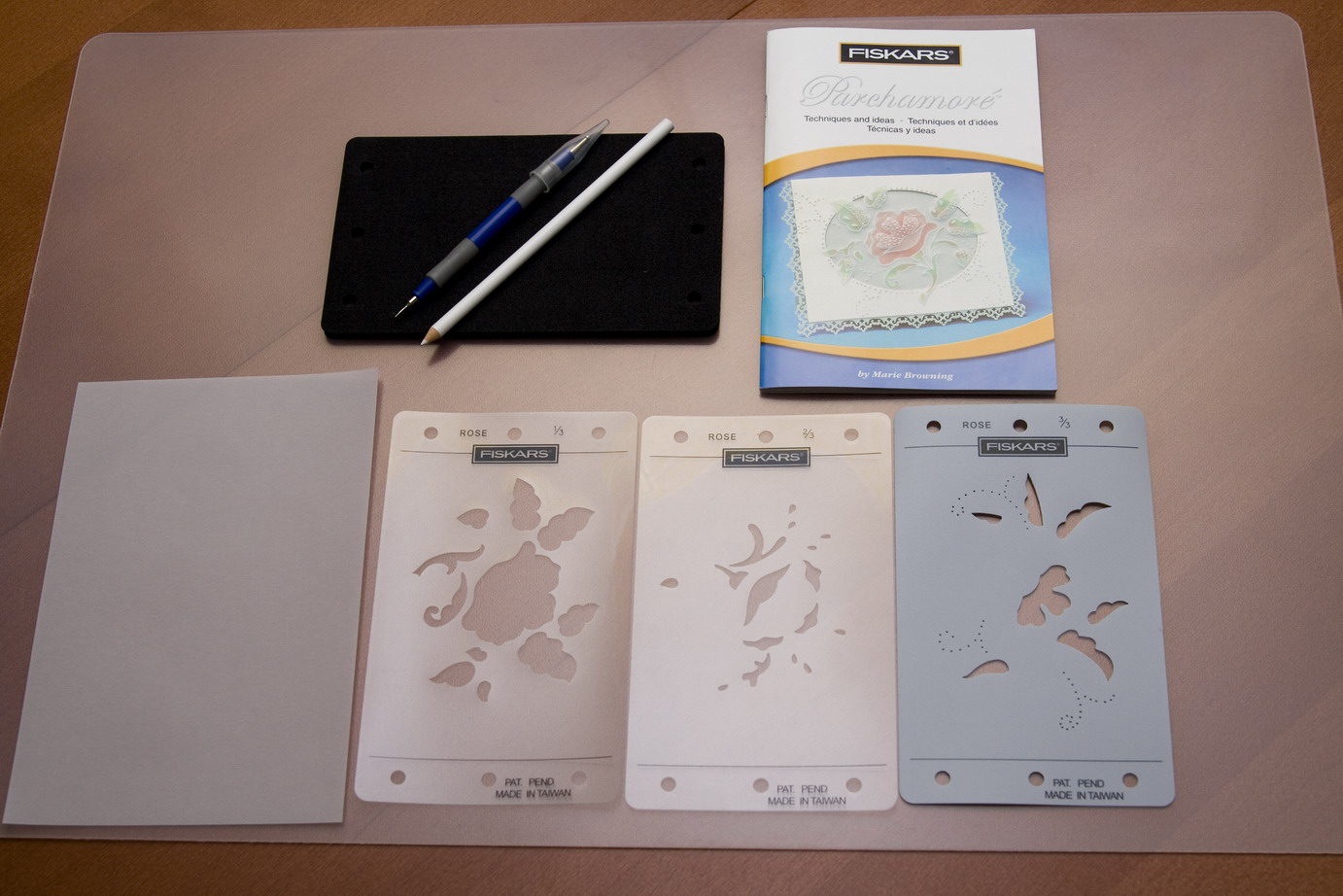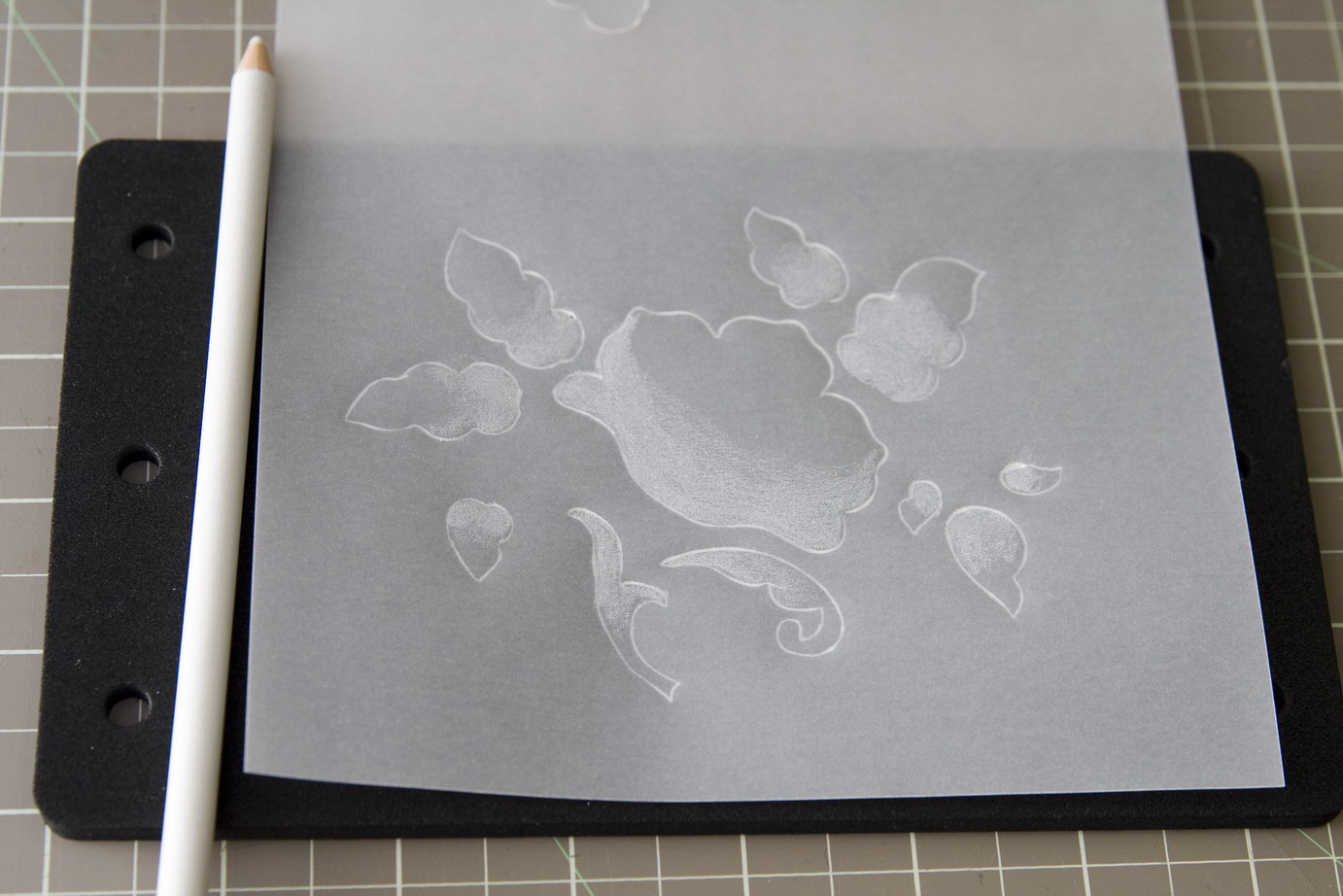 Так вот, т.к. подаренный мне пергамент был потоньше, то острое окончание выдавливательного инструмента могло его и порвать. И тут я вспомнила, что прикупила специальную ручку для переноса рисунка с помощью копировальной бумаги TRACER PEN CLOVER.